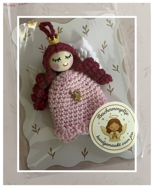 Gehaakt engeltje - lichtroze - d. rood haar