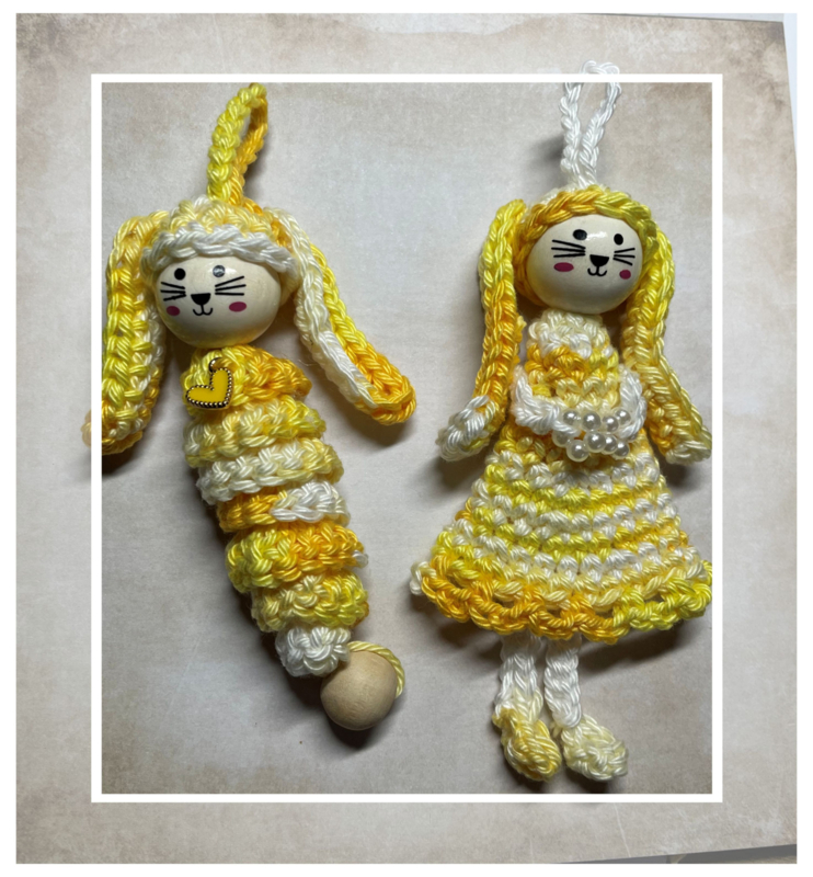 Gehaakt gelukswormpje - konijntje - geel tinten