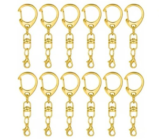 Sleutelhanger - D-vorm - met kettinkje en musketonhaakje - goud - 6cm